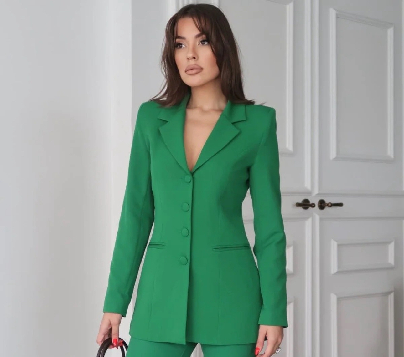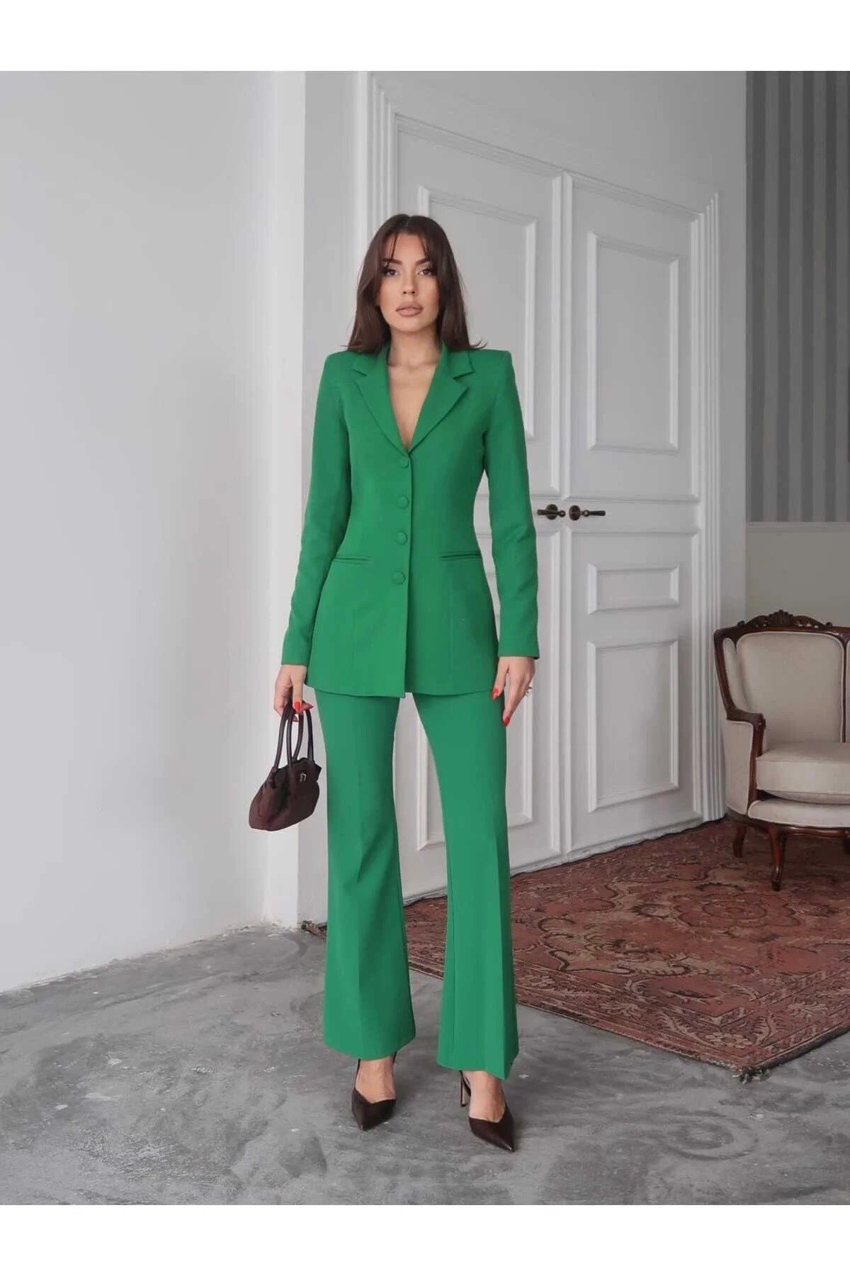 متجر زحل – طقم بدلة نسائية من قماش كريب فاخر – قصة كلاسيك أنيقة