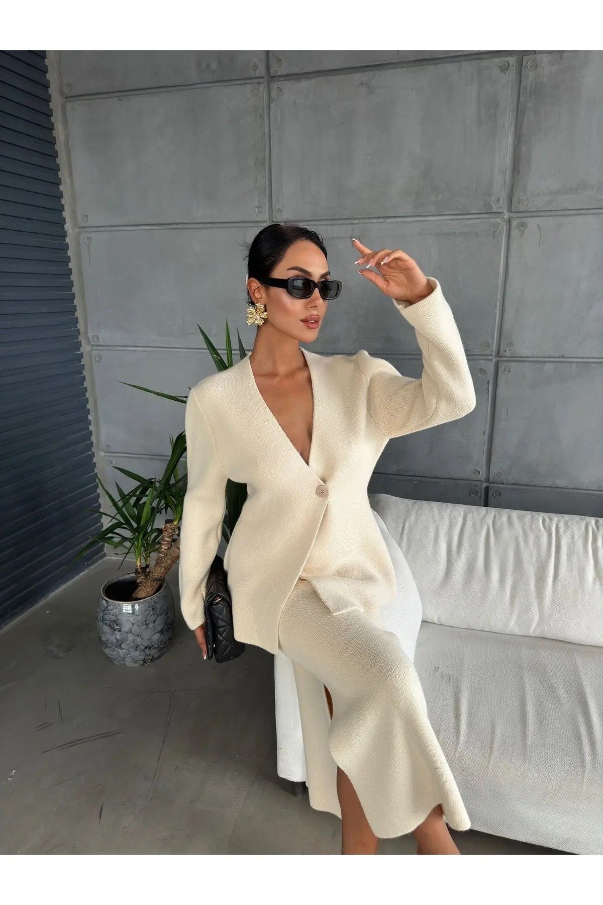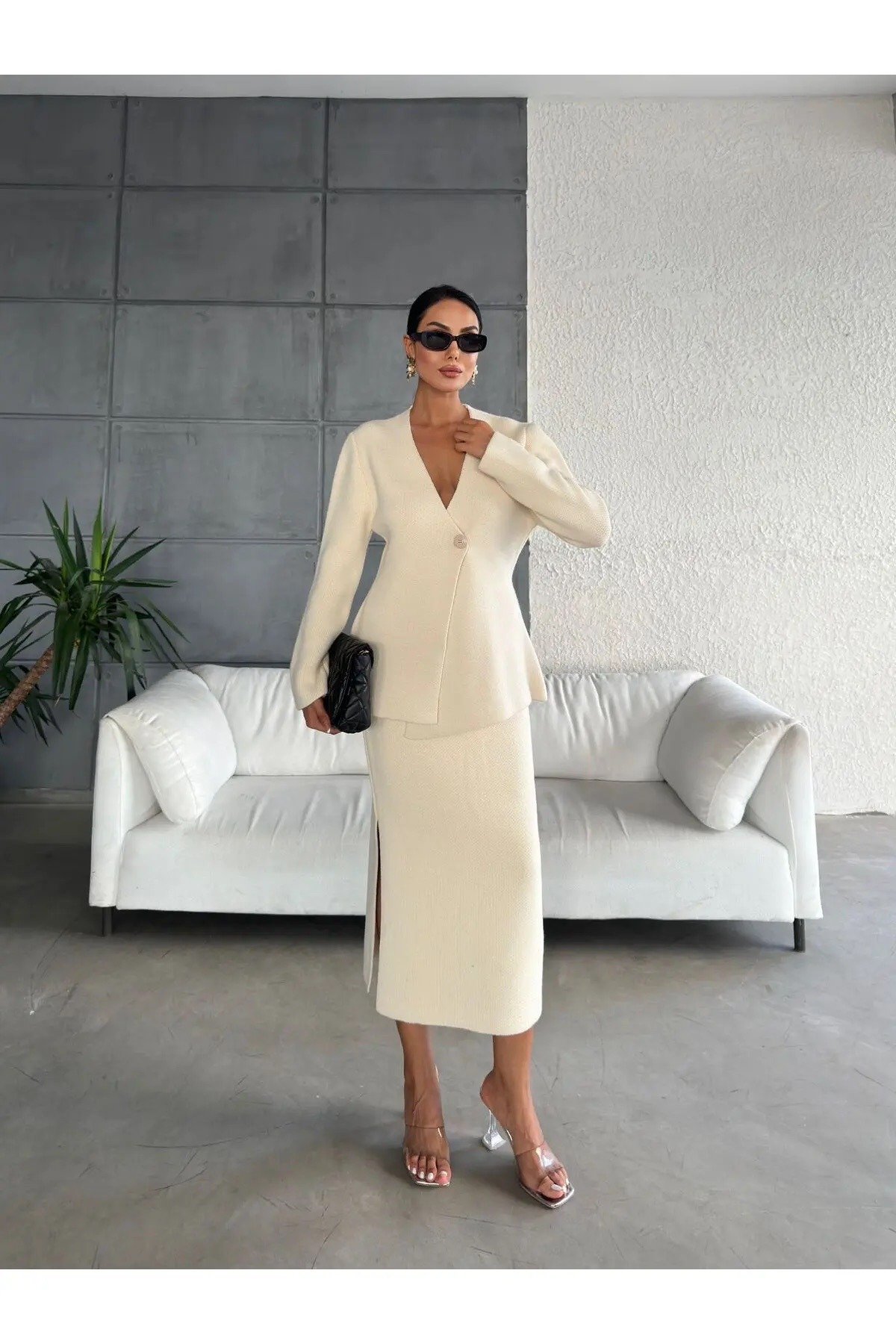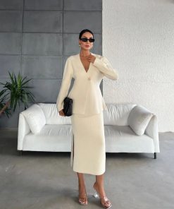 متجر زحل – طقم بدلة نسائية من قماش كريب فاخر – قصة كلاسيك أنيقة
