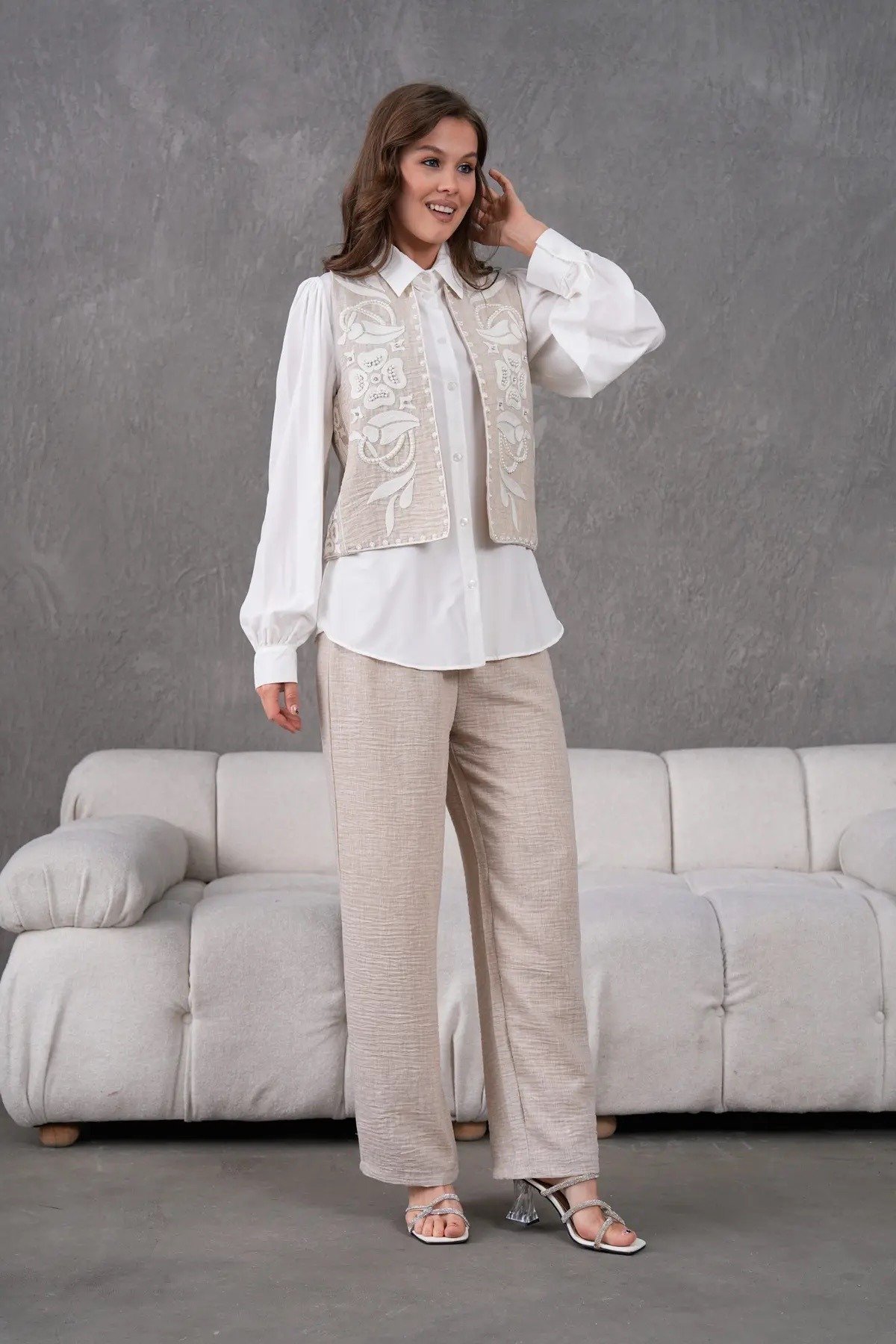 متجر زحل – طقم بدلة نسائية من قماش كريب فاخر – قصة كلاسيك أنيقة