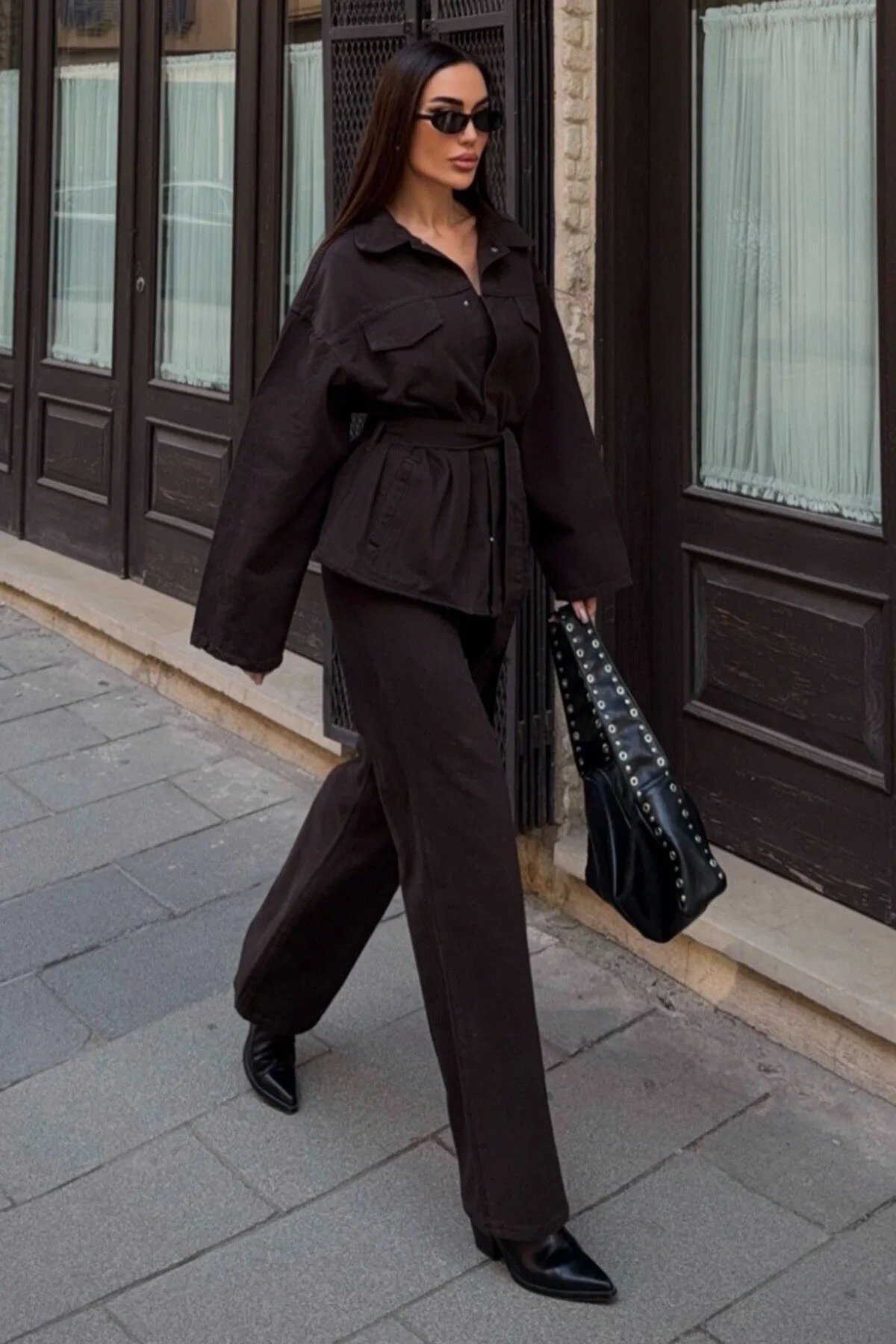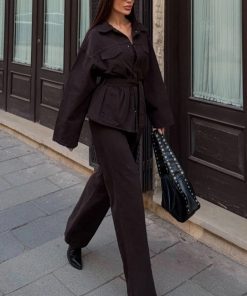 متجر زحل – طقم نسائي كريب مطفي فاخر – جاكيت وبنطال بقصة أنيقة