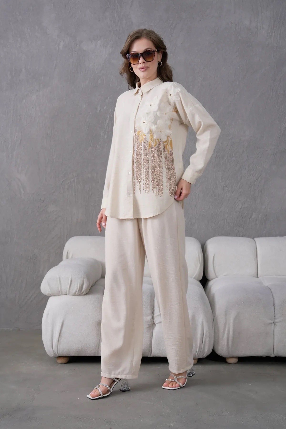 متجر زحل – طقم فيست وبنطال من قماش كريب فاخر