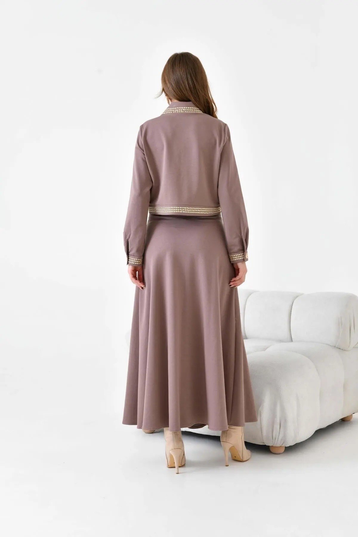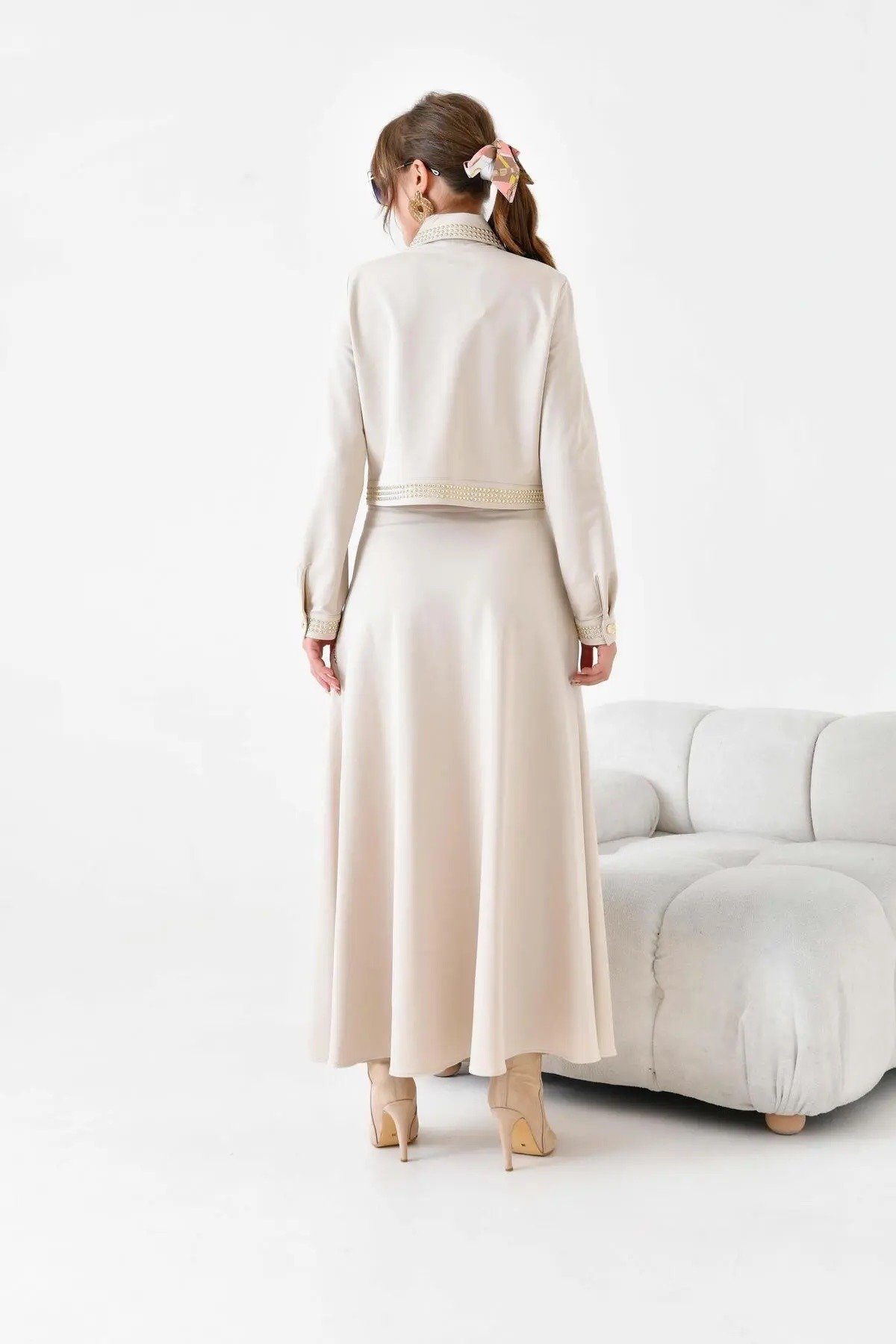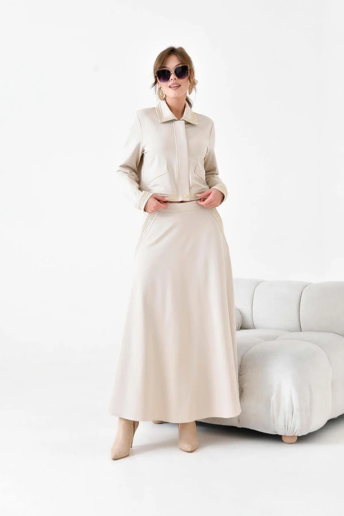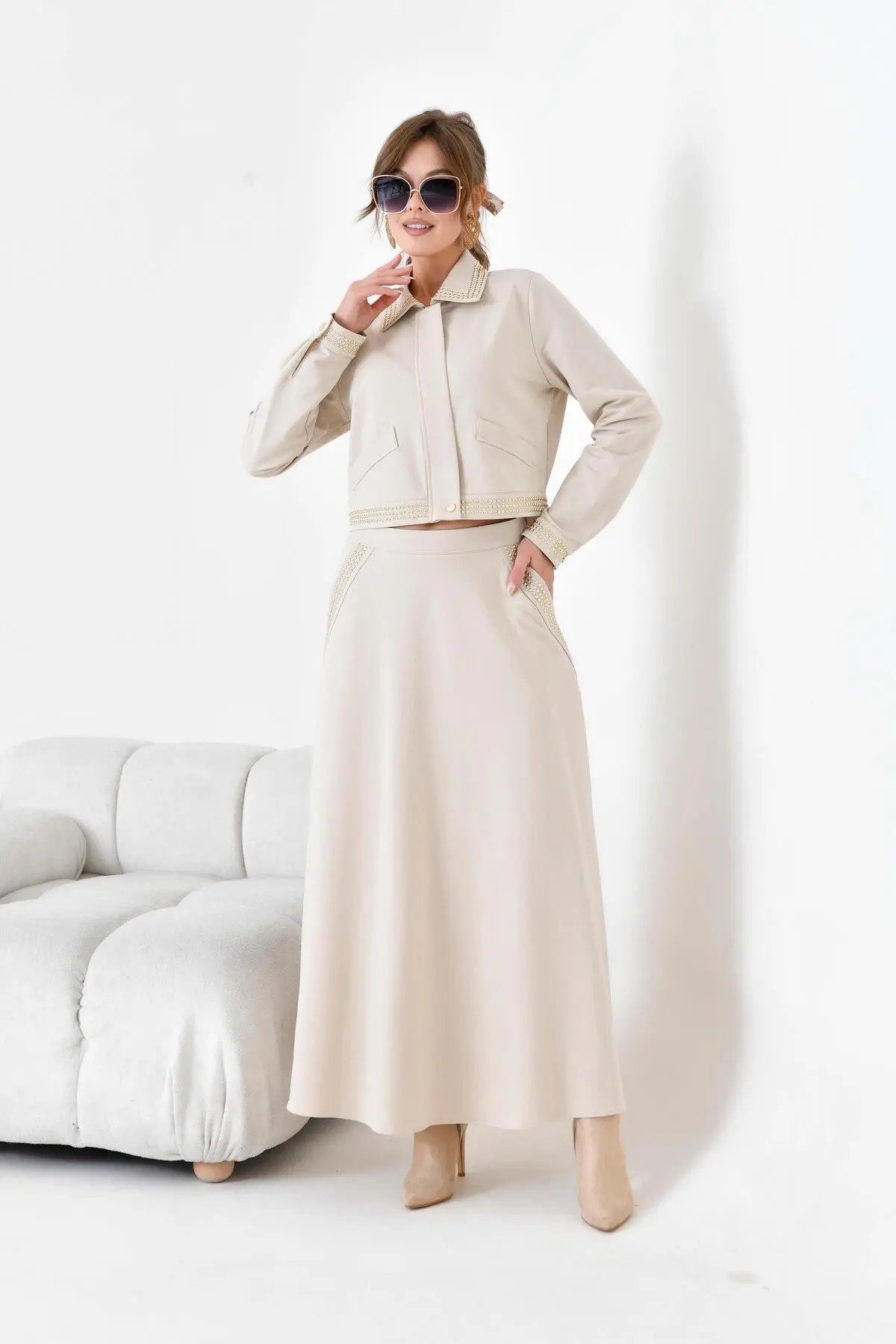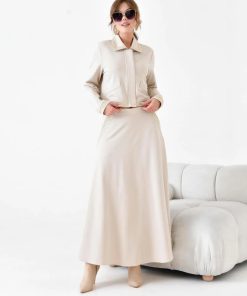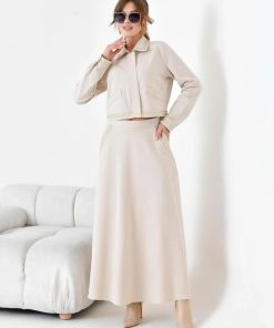 متجر زحل – طقم بلازر وتنورة بليسيه من قماش الكريب الفاخر