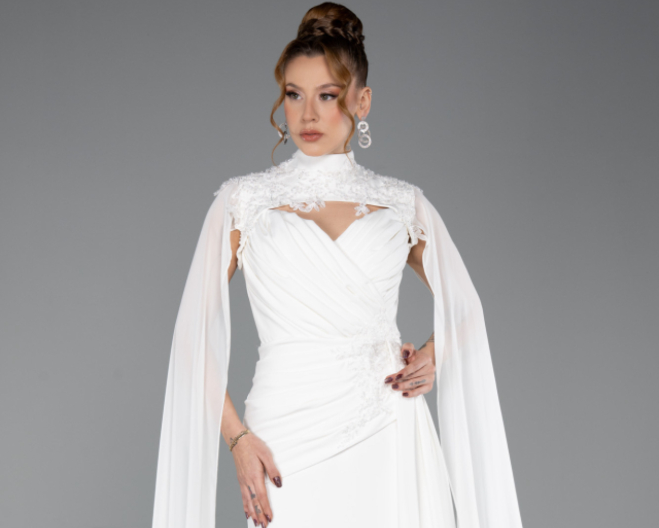 متجر زحل – فستان سهرة دانتيل مطرّز بتصميم ملكي