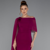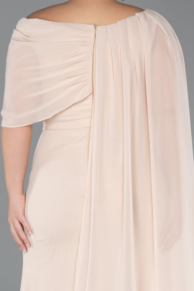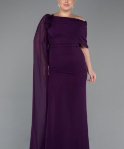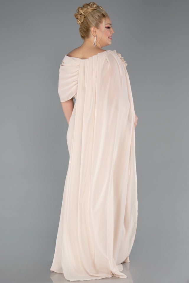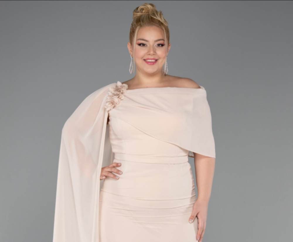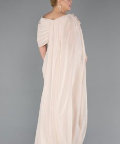 متجر زحل – فستان سهرة شيفون ناعم مع أكمام دانتيل مطرّزة