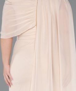 متجر زحل – فستان سهرة أبيض من قماش الكريب مع ياقة درابيه