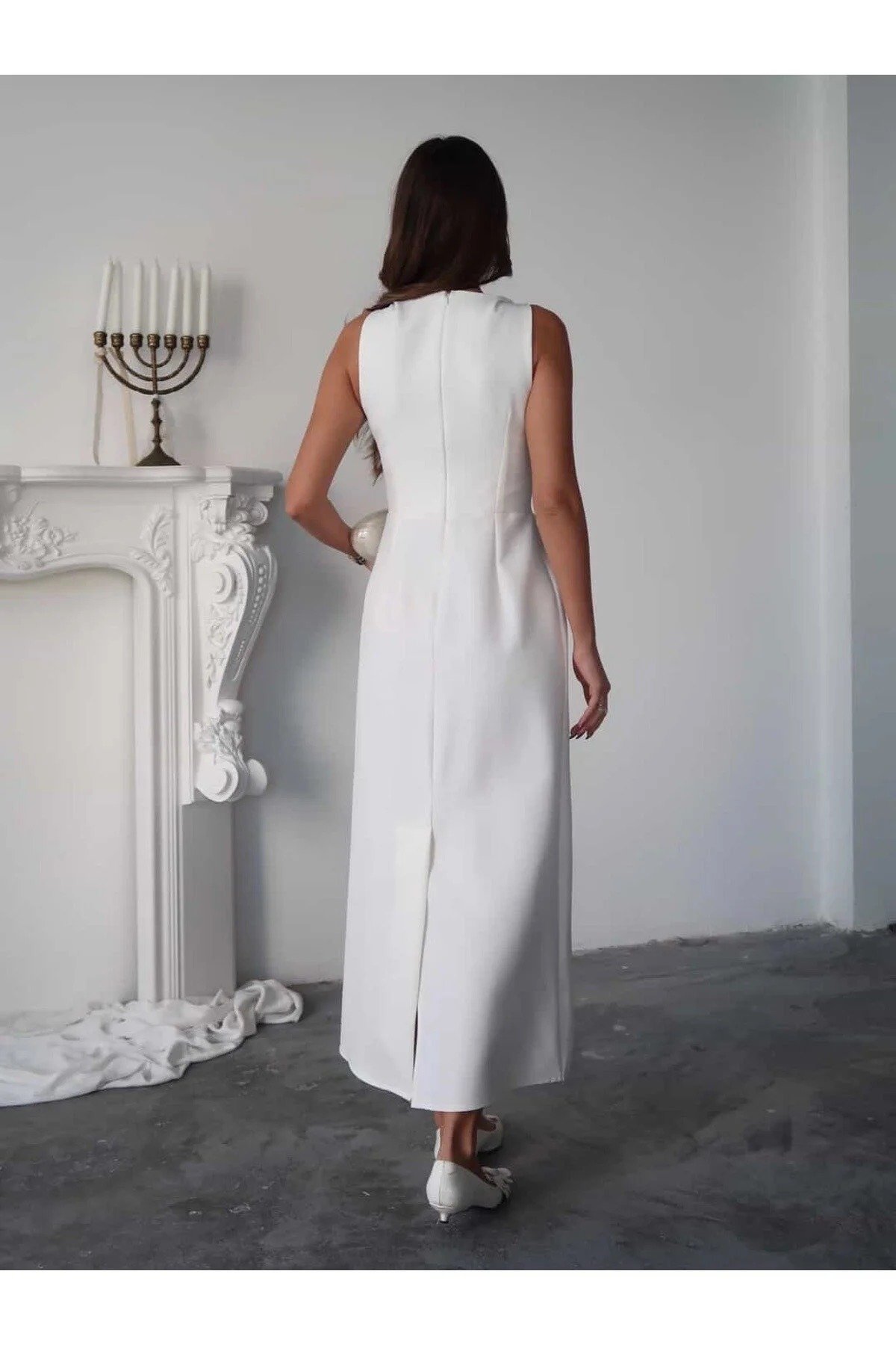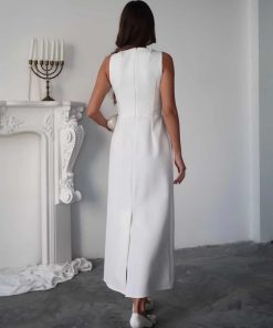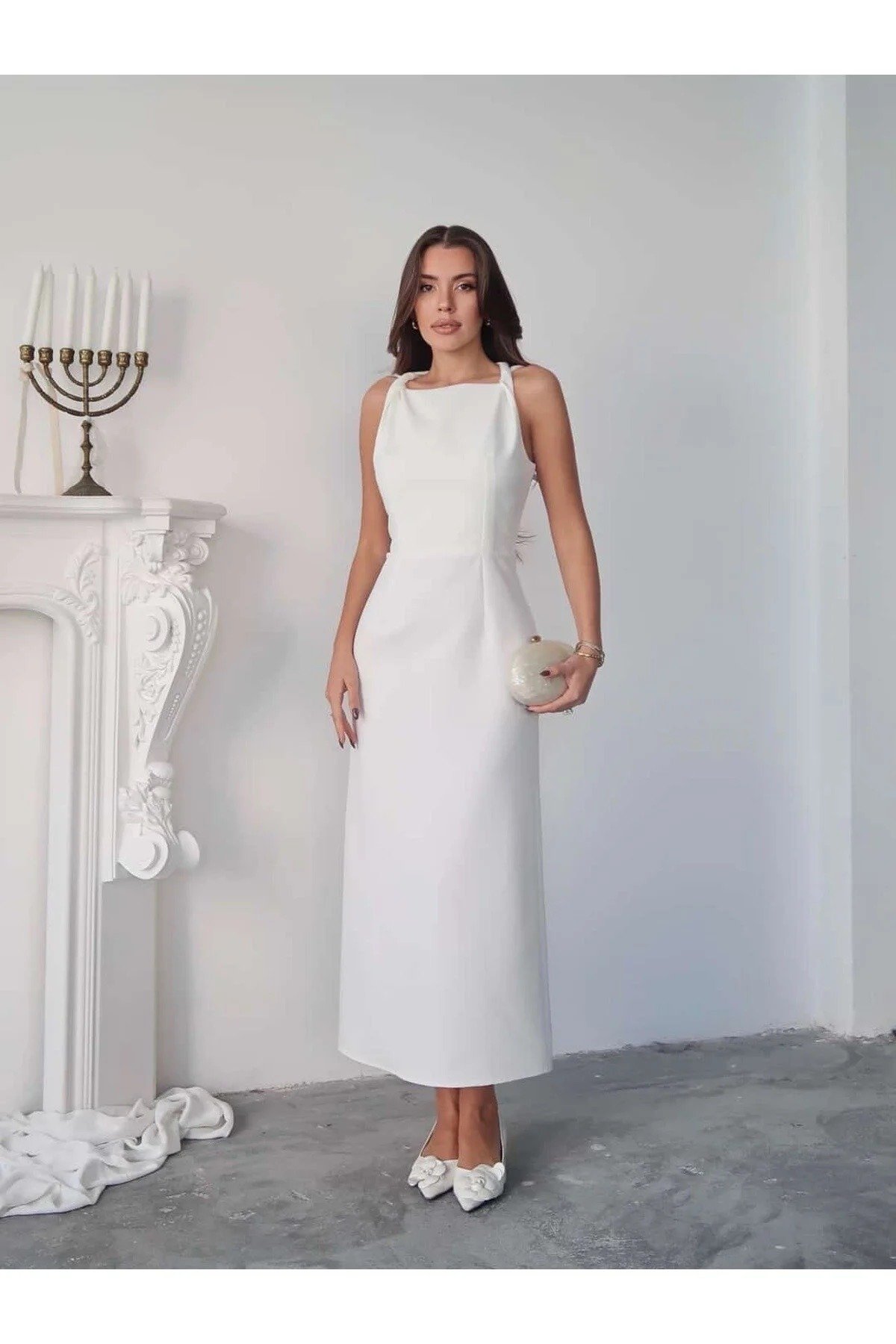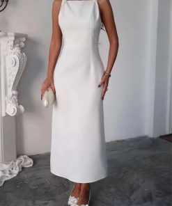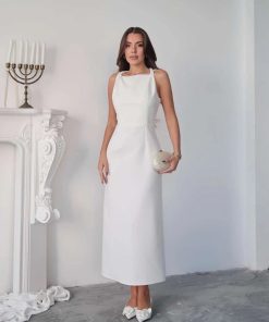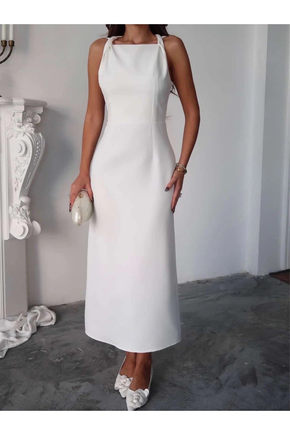 متجر زحل – فستان كريب أبيض بتفصيل تول شفاف فاخر