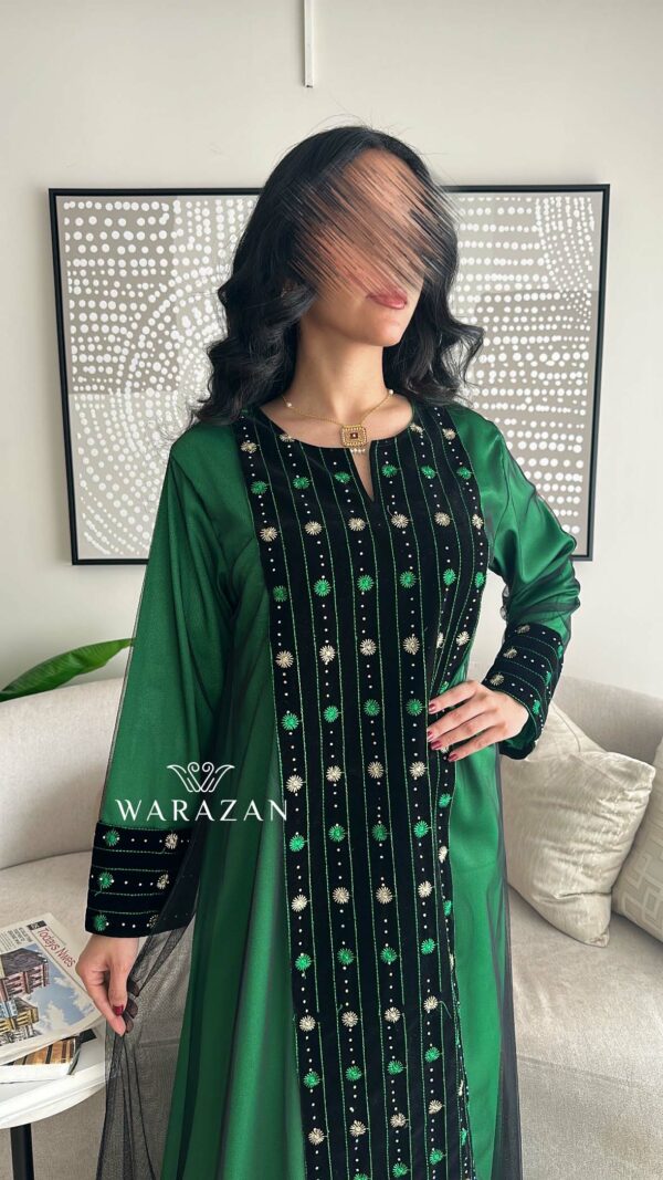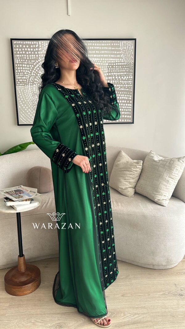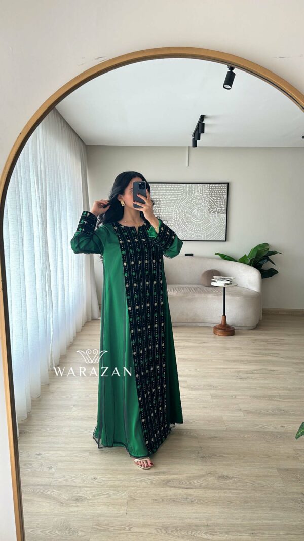 دار الجلابية – عباية كتان بكلفة و تطريز ترتر علي الكم