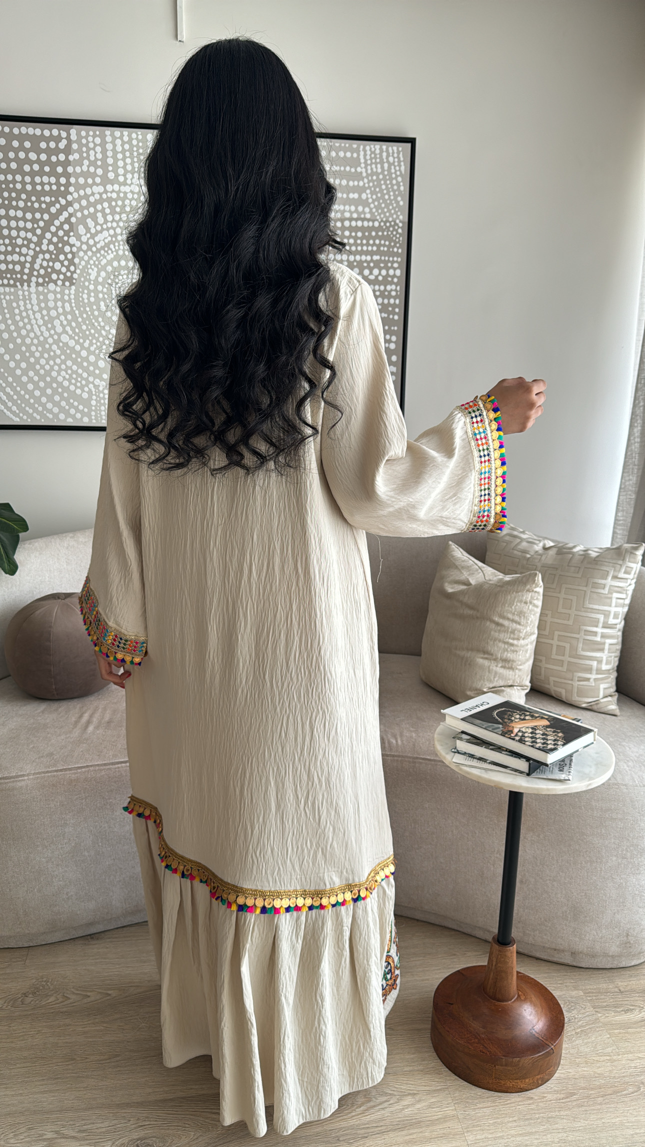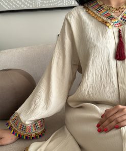 دار الجلابية – عباية كتان بكلفة و تطريز ترتر علي الكم