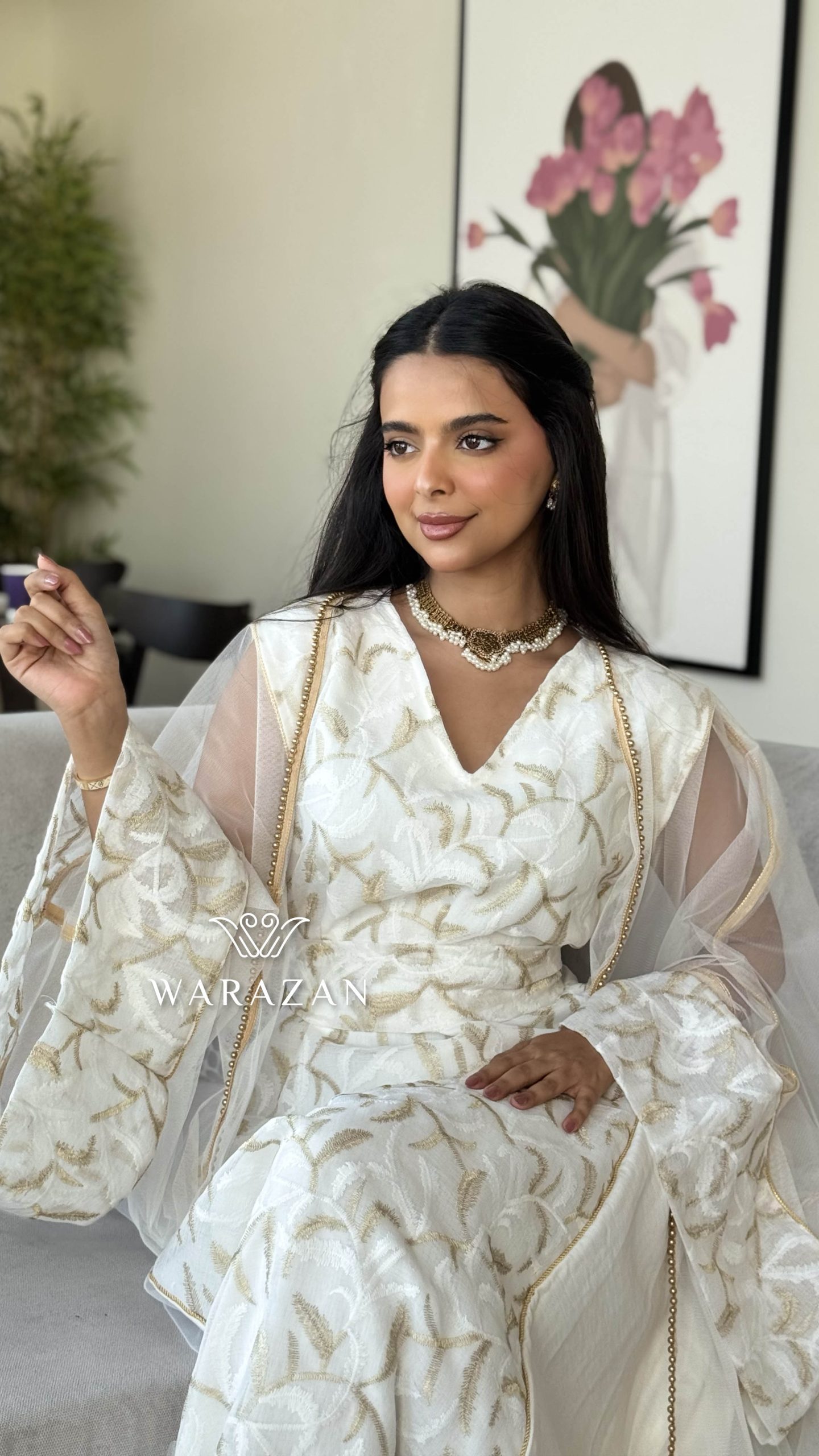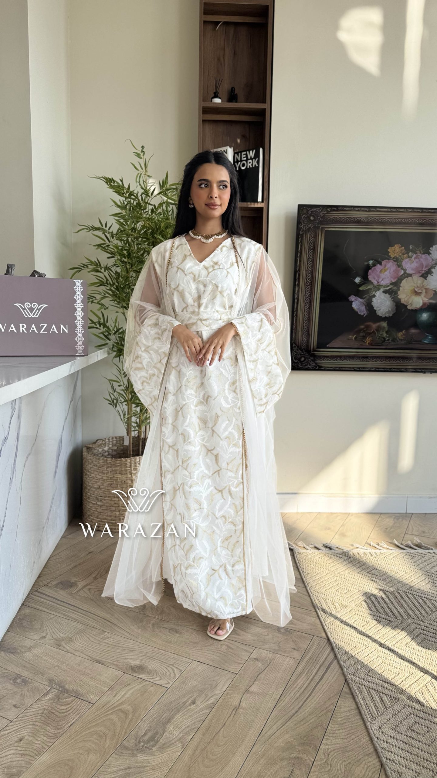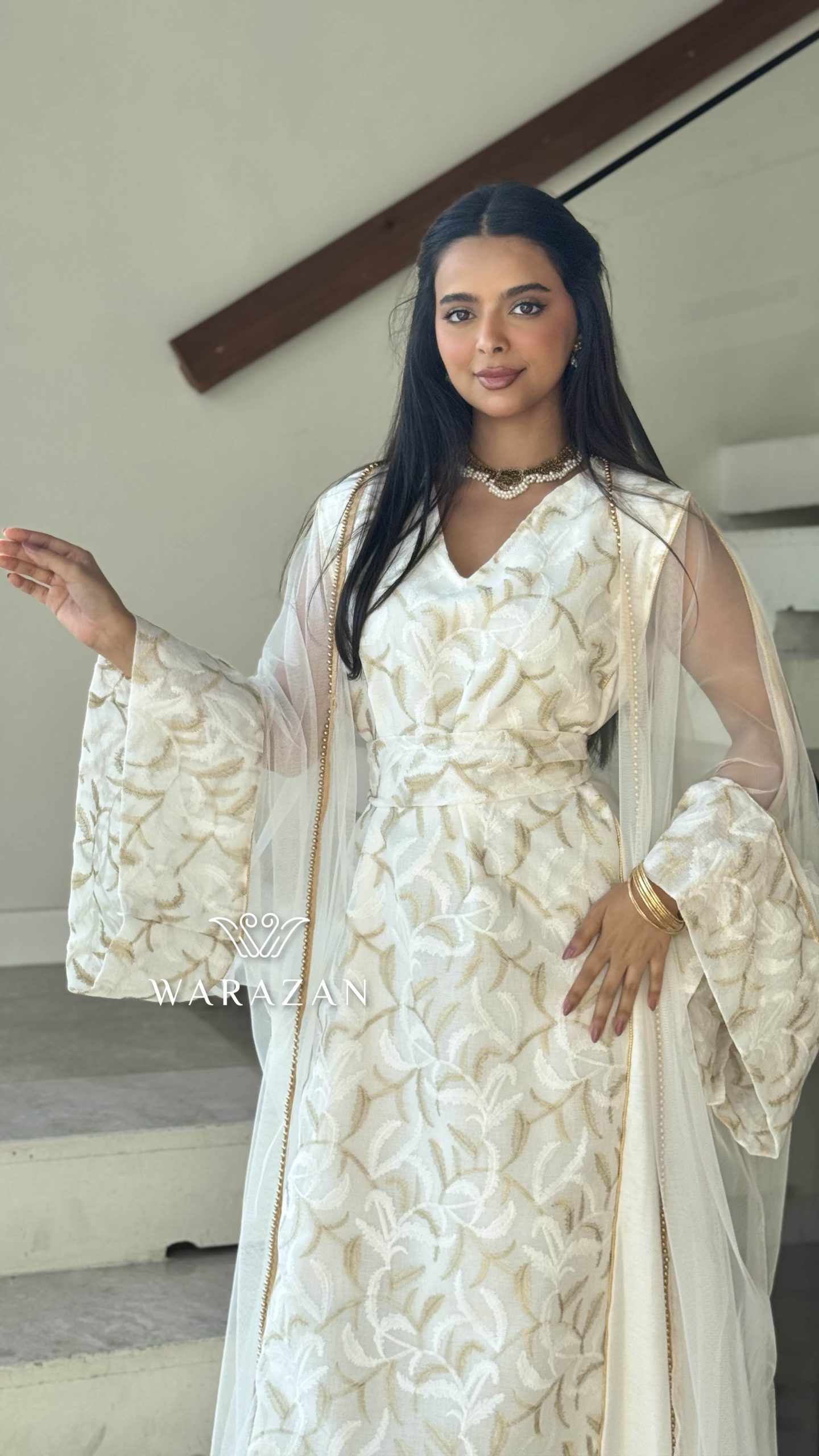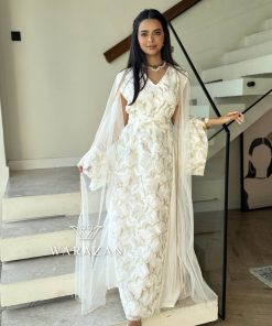 دار الجلابية – عباية كتان بكلفة و تطريز ترتر علي الكم