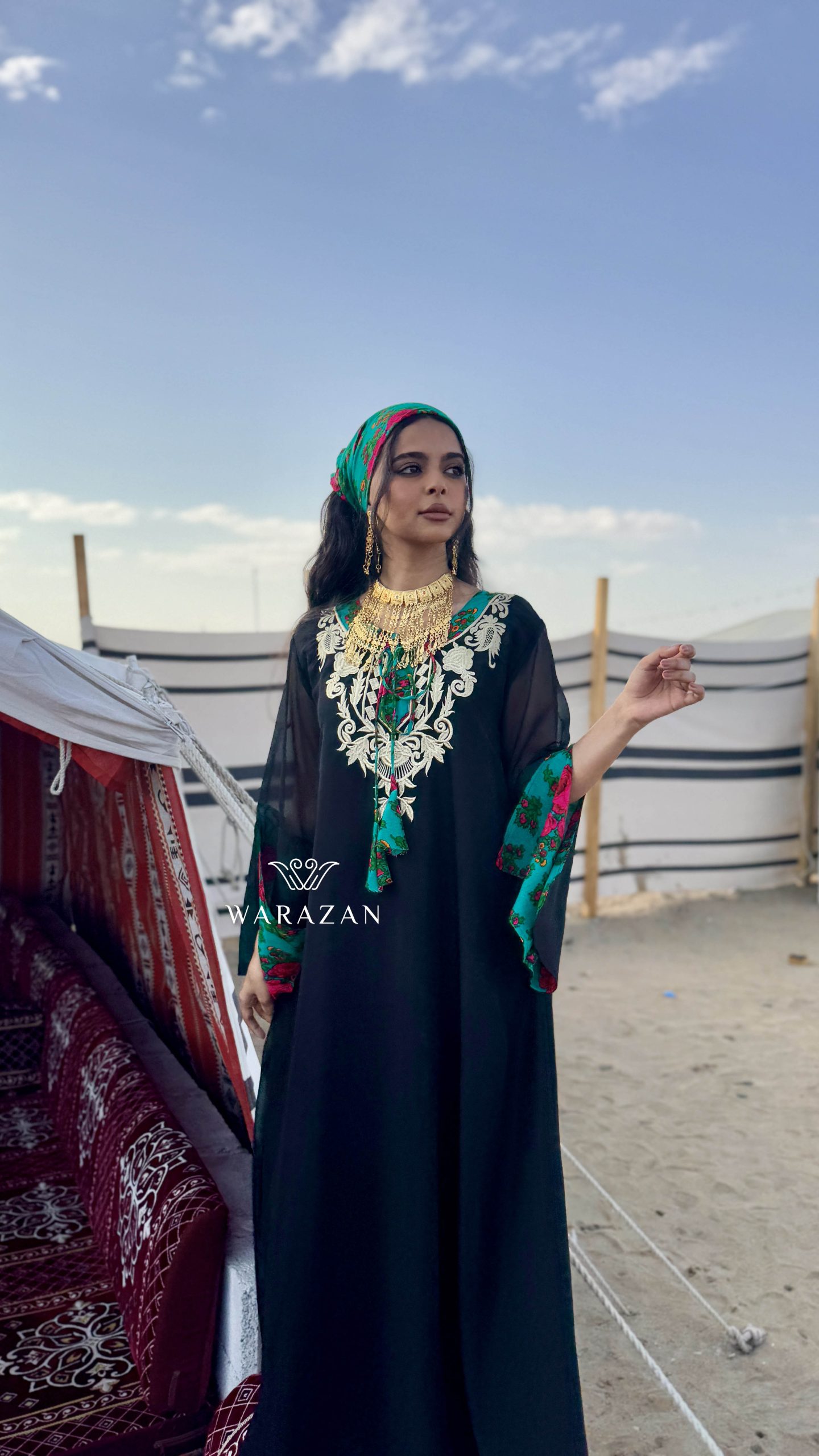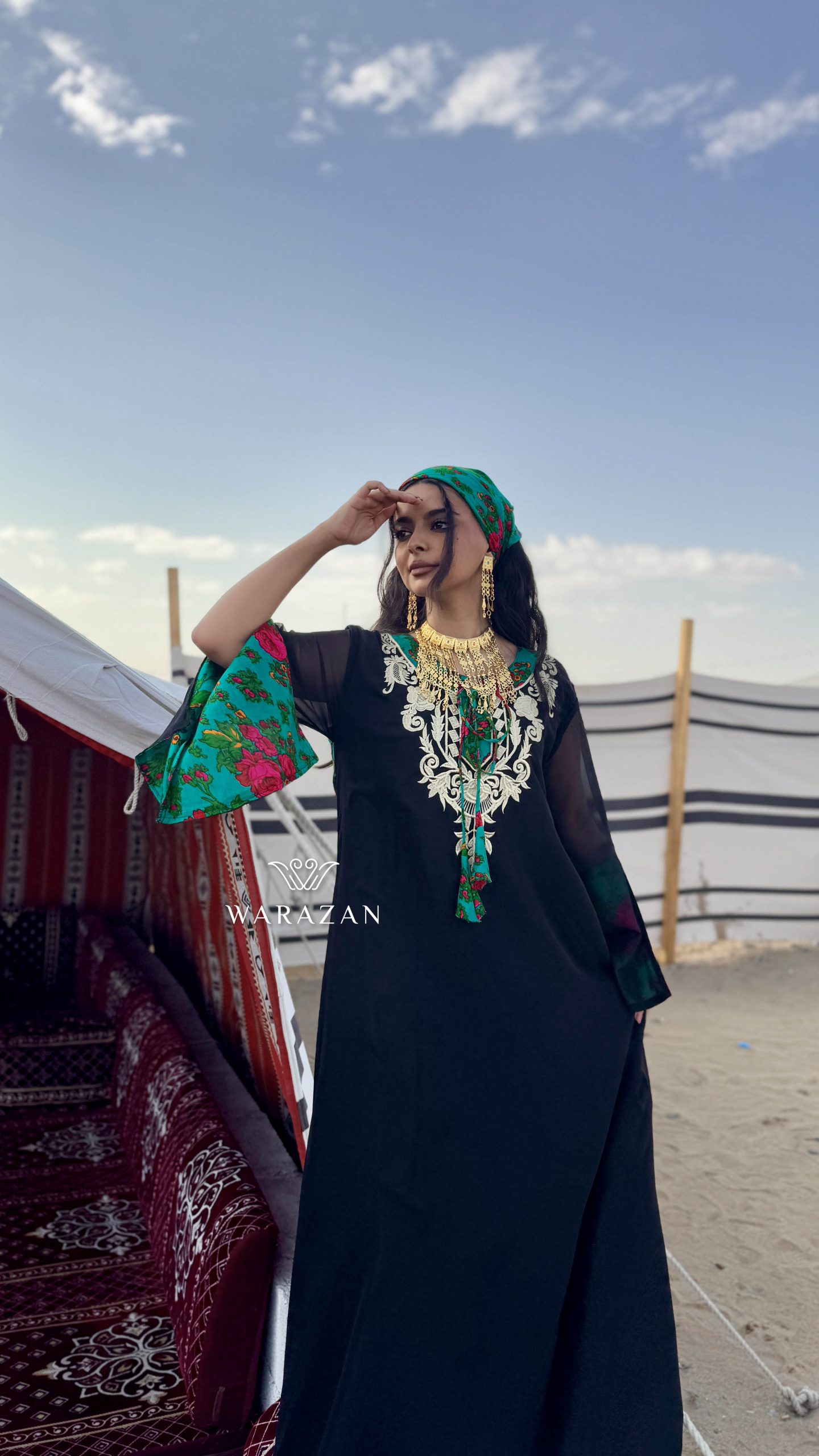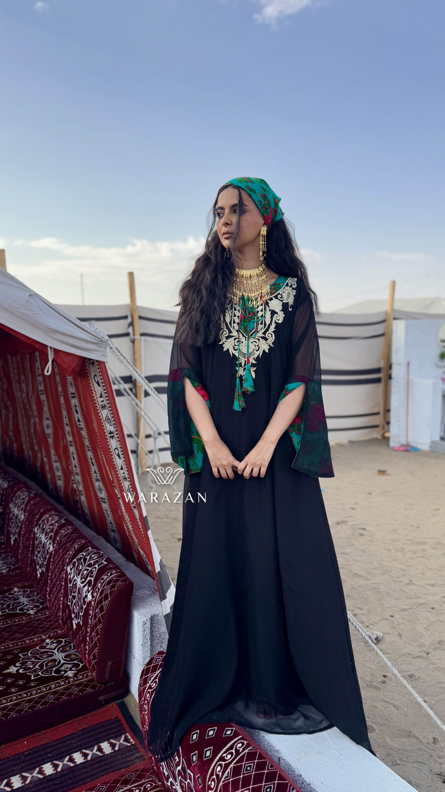 دار الجلابية – عباية كتان بجيبين و تطريز ايتامين سيناوي