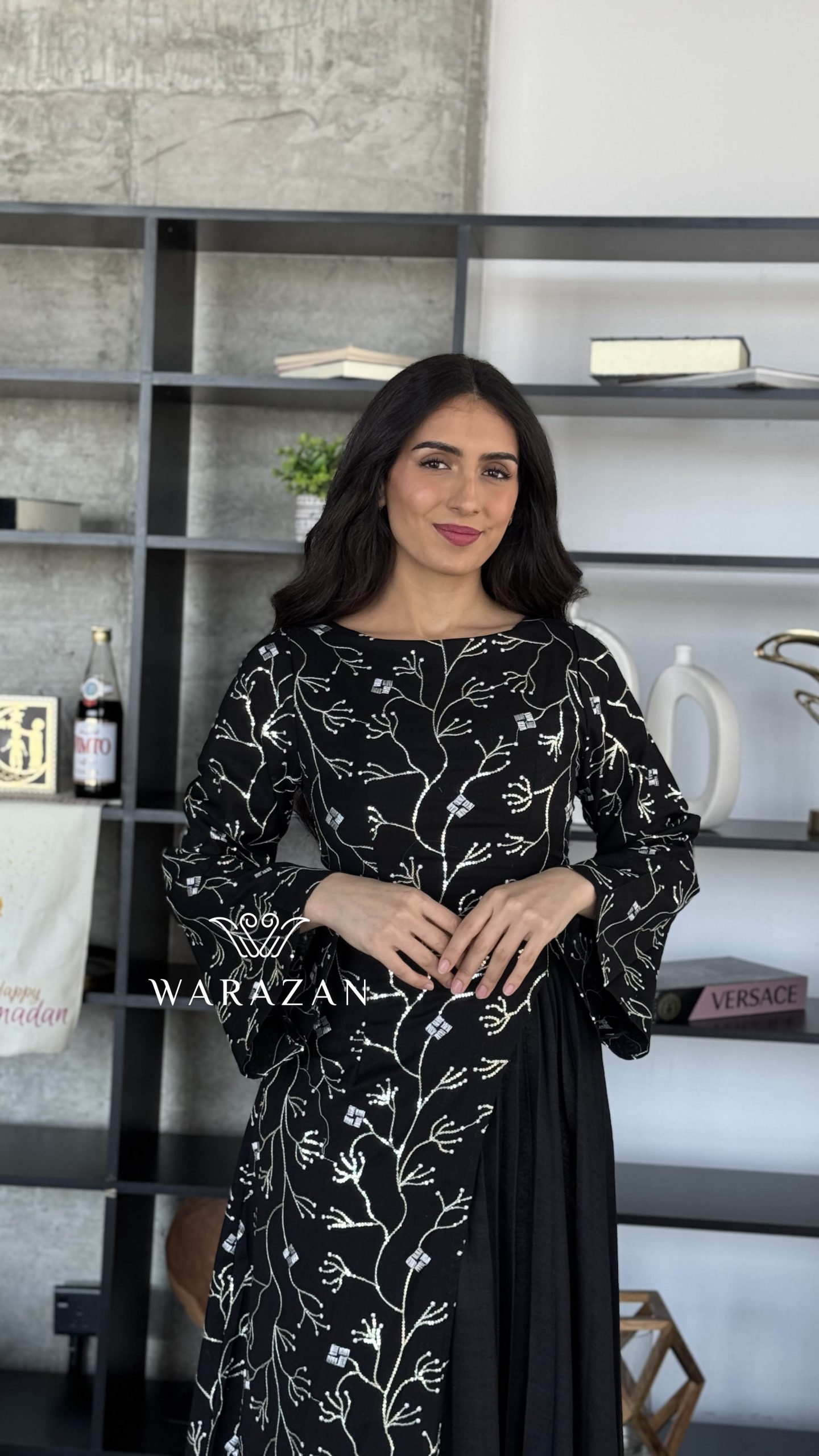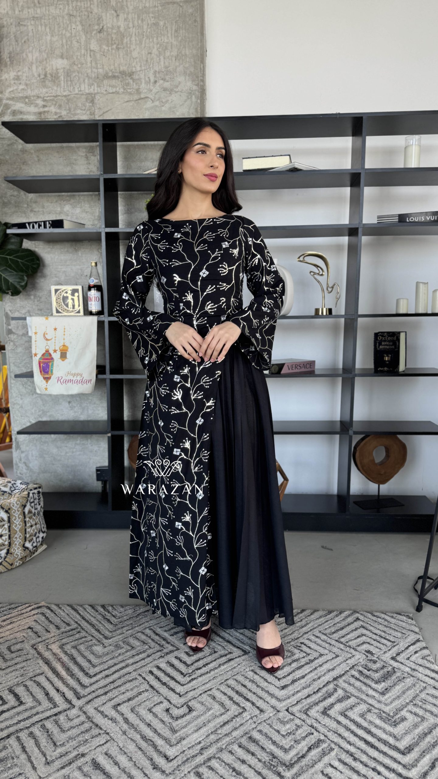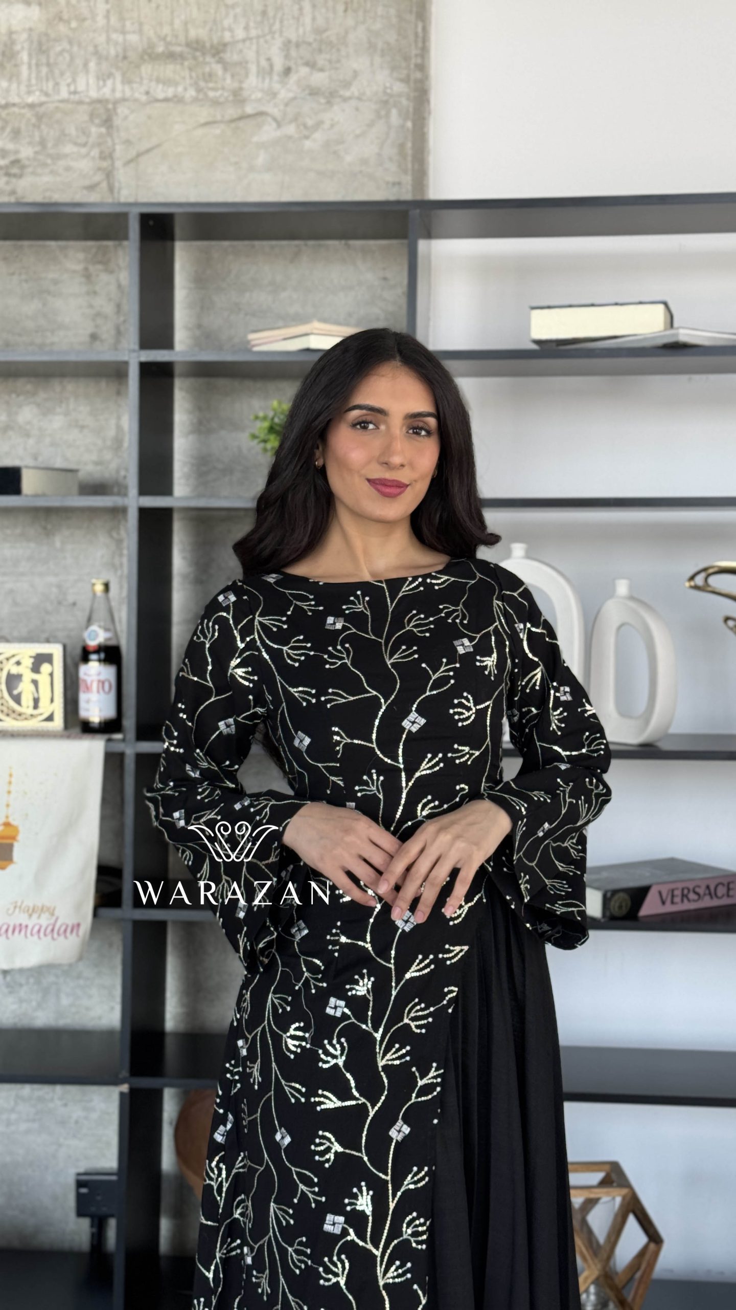 دار الجلابية – عباية كتان بكلفة و تطريز ترتر علي الكم