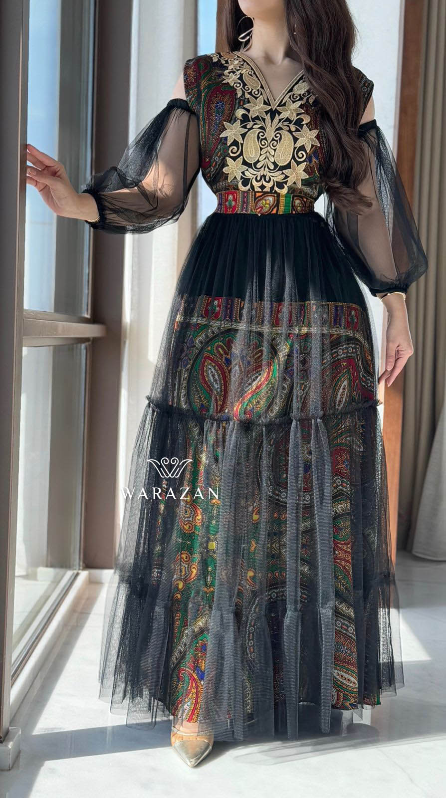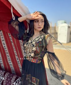 دار الجلابية – عباية كتان بكلفة و تطريز ترتر علي الكم