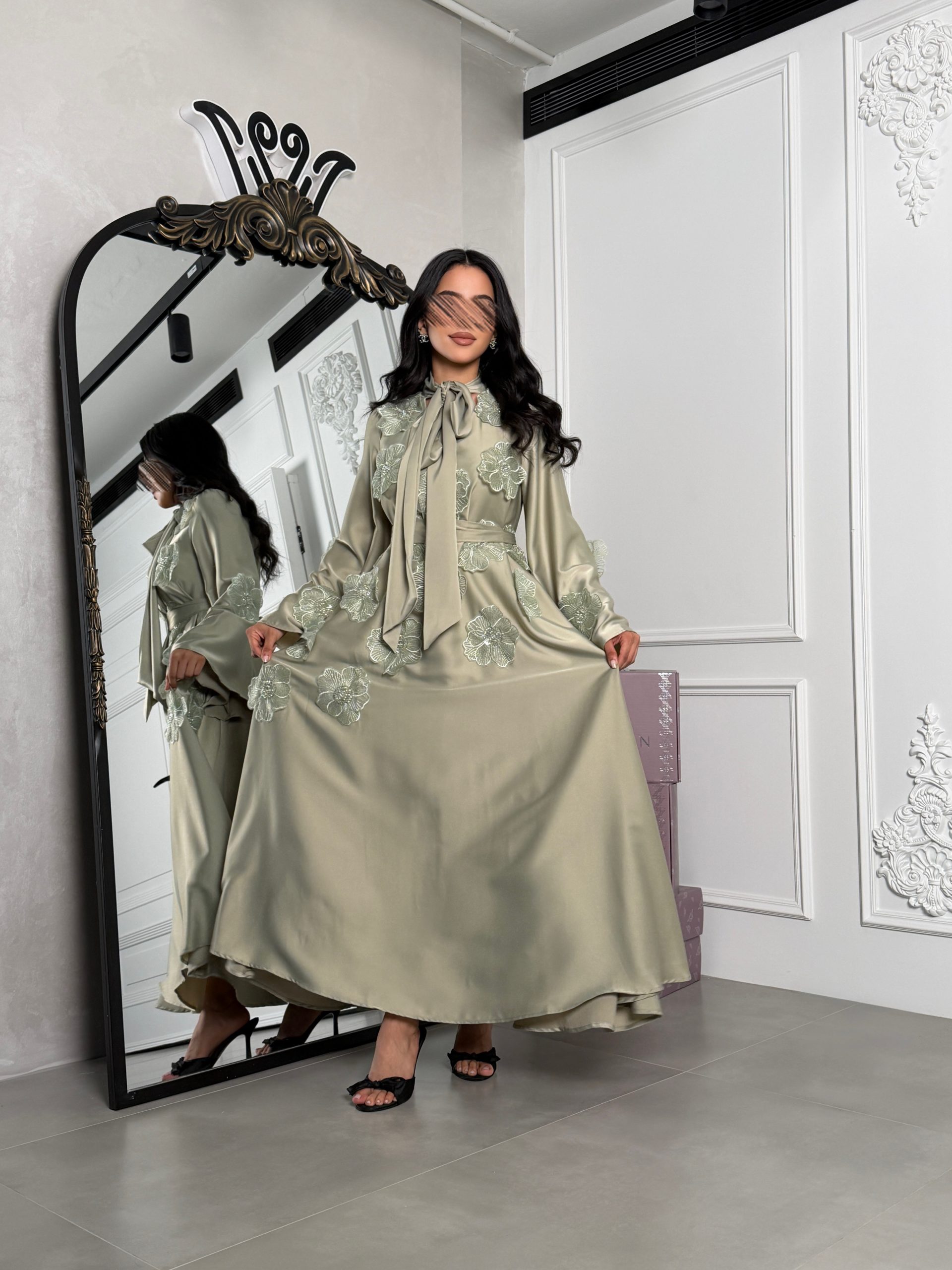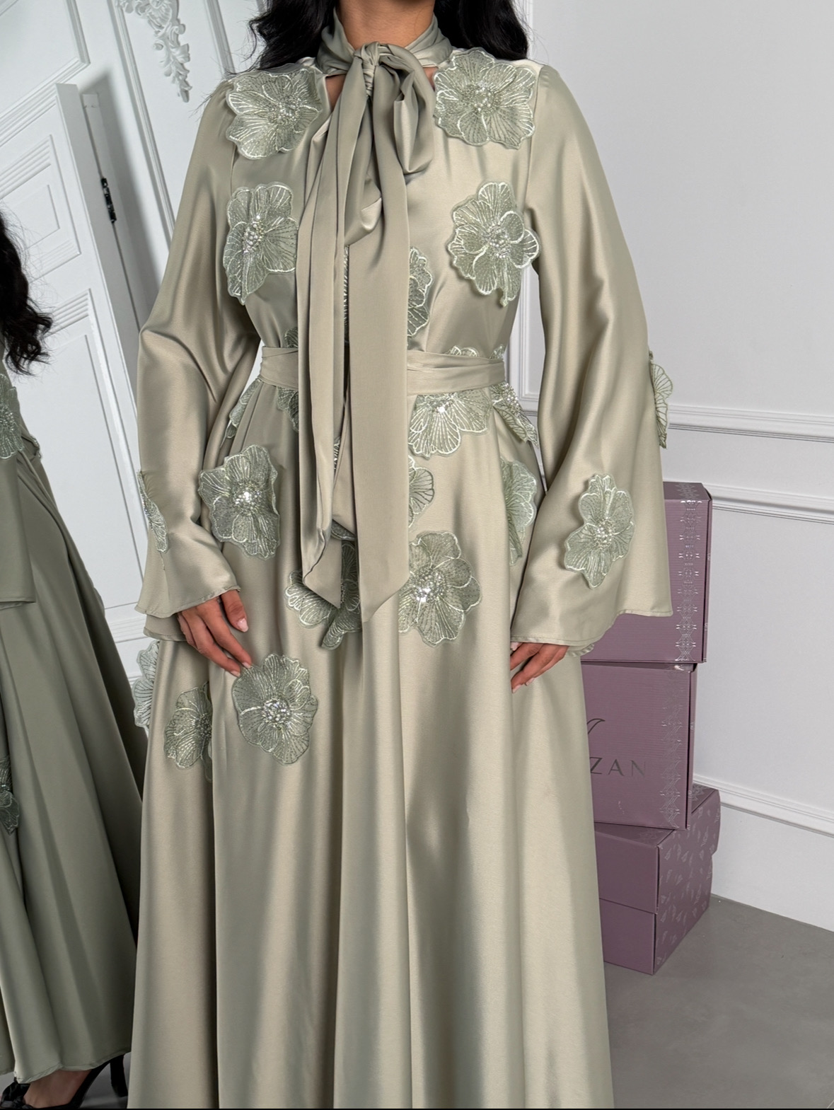 دار الجلابية – عباية كتان بجيبين و تطريز ايتامين سيناوي