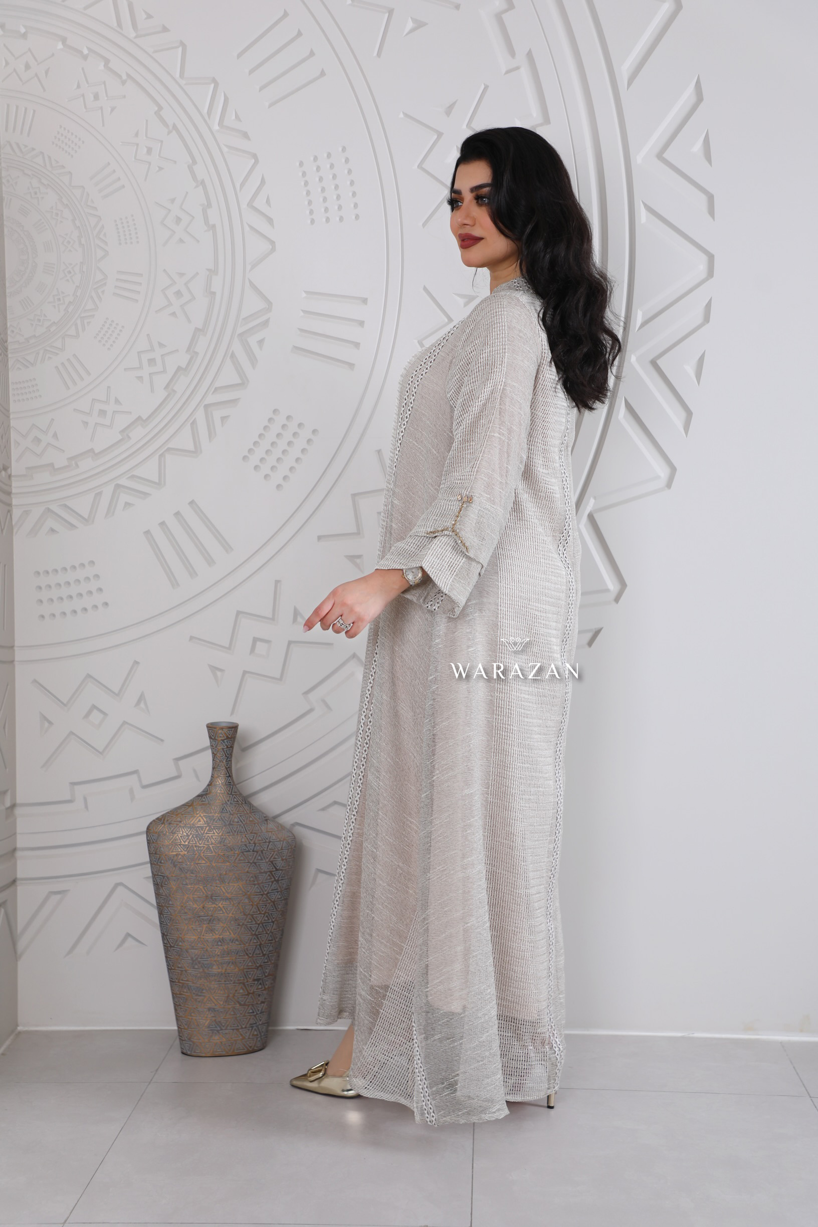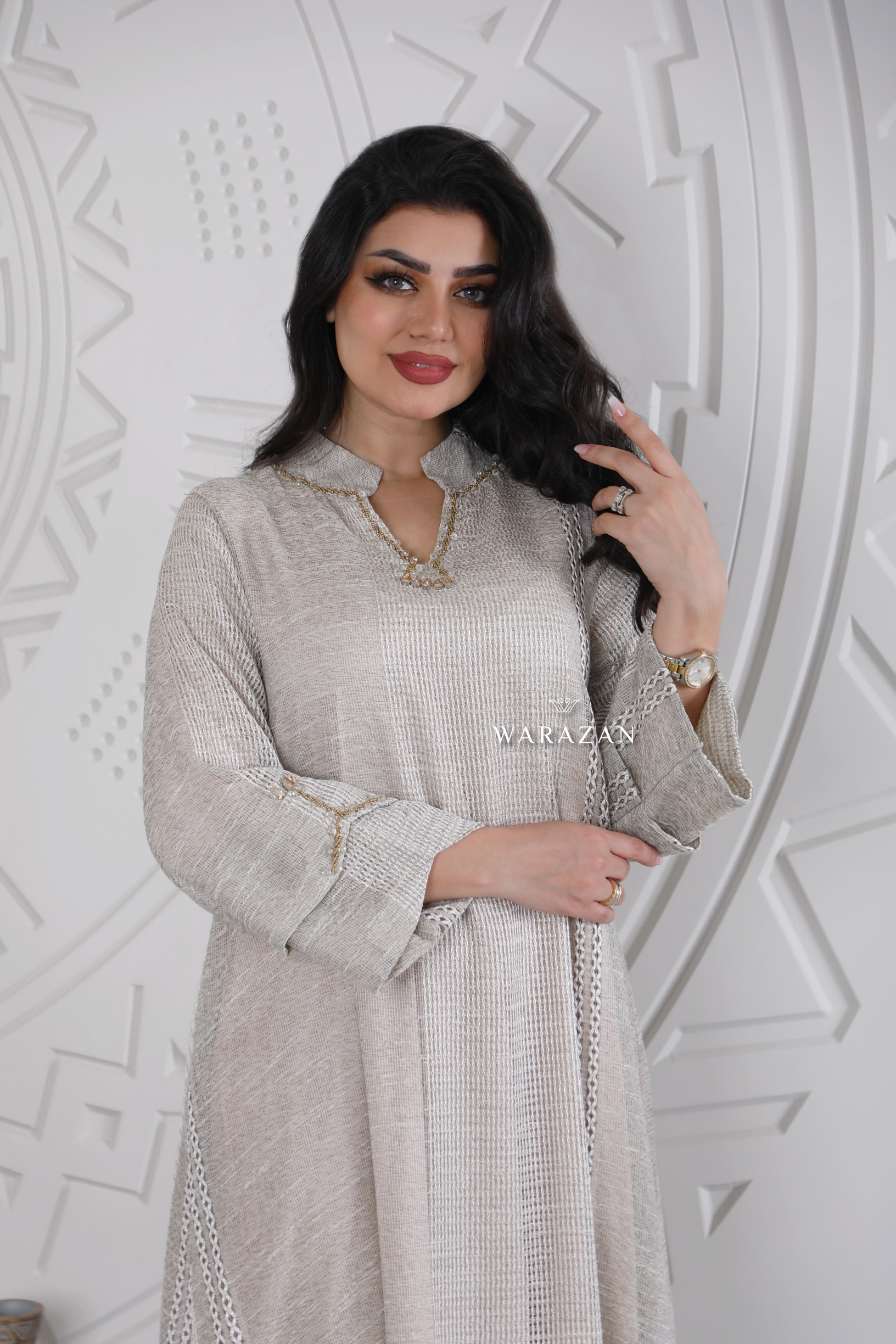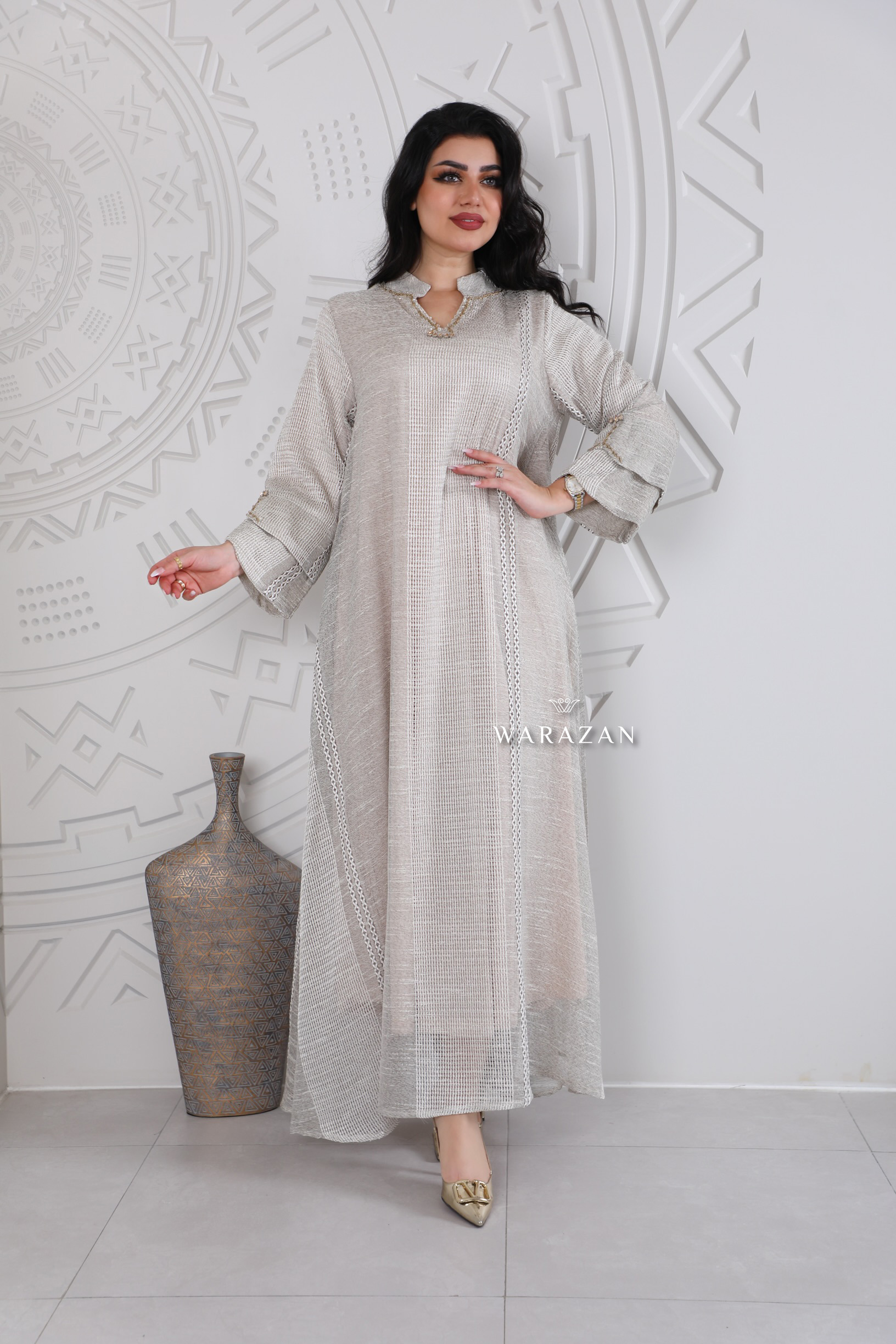 دار الجلابية – عباية كتان بكلفة و تطريز ترتر علي الكم